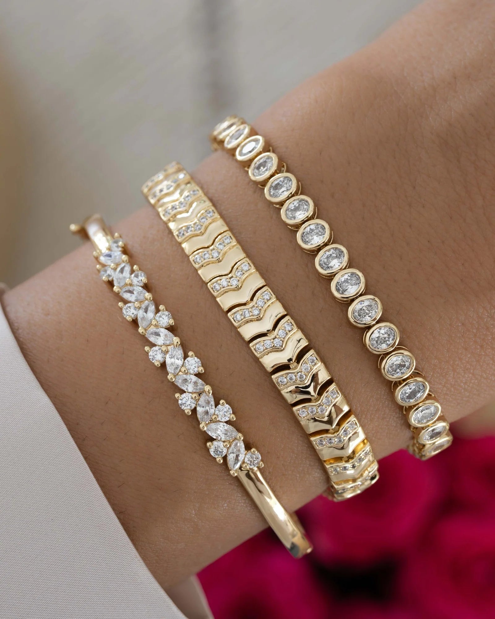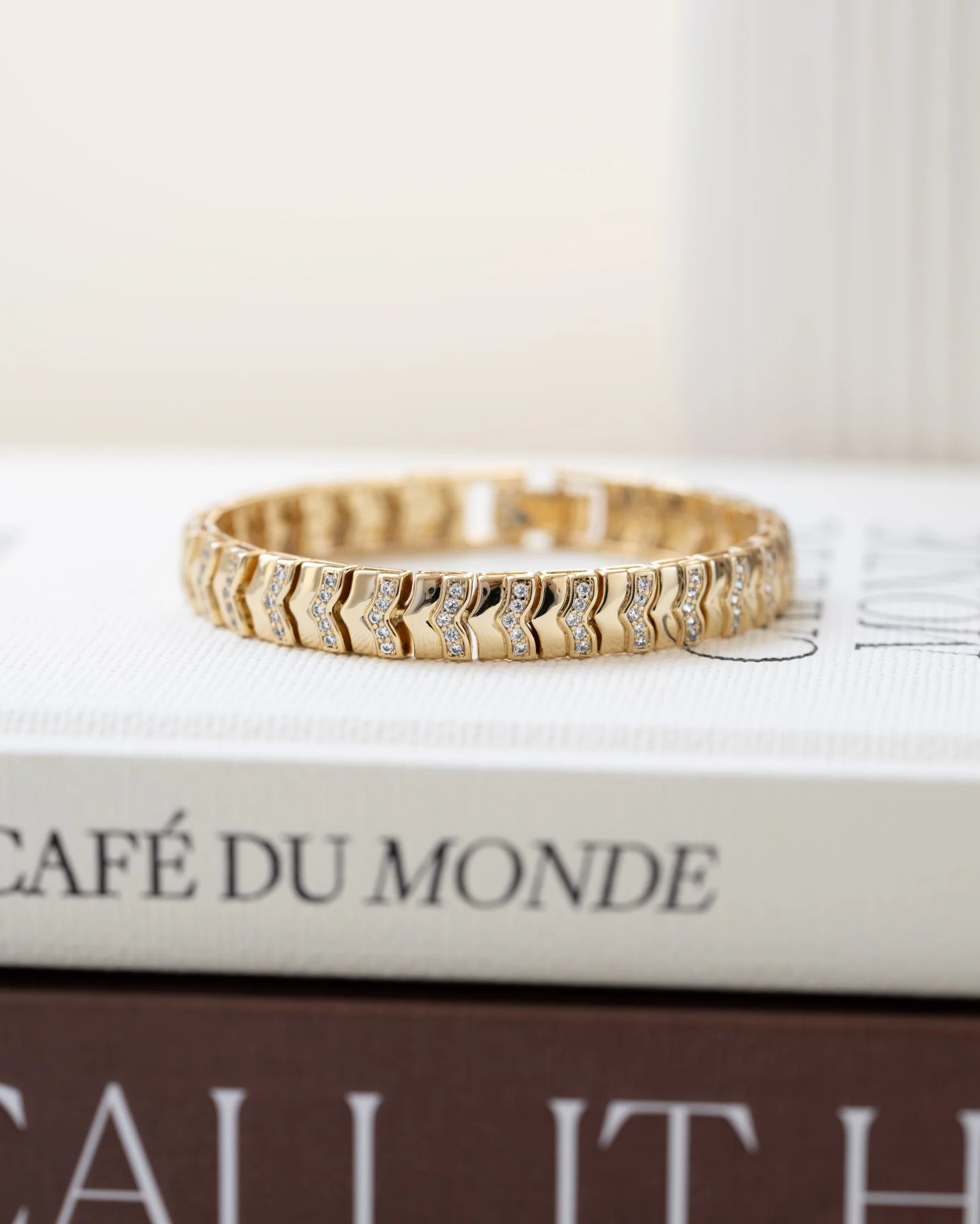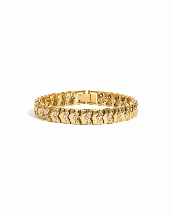 This Chevron Chain Tennis Bracelet features a sleek chevron design that combines bold texture with just the right amount of sparkle. Perfect for days on the go when you want an instant style upgrade. Wear it solo for a chic statement, or stack it with your favorite chains and tennis bracelets for a more dressed up look. Versatile and timeless, this statement bracelet transitions effortlessly from casual days to nights out.