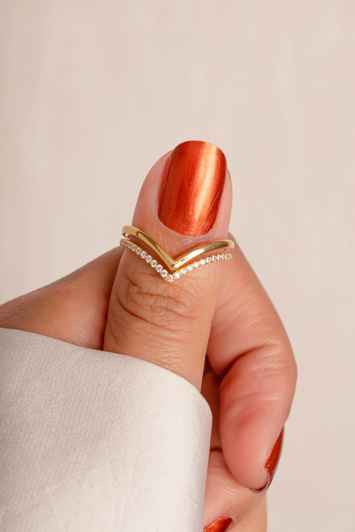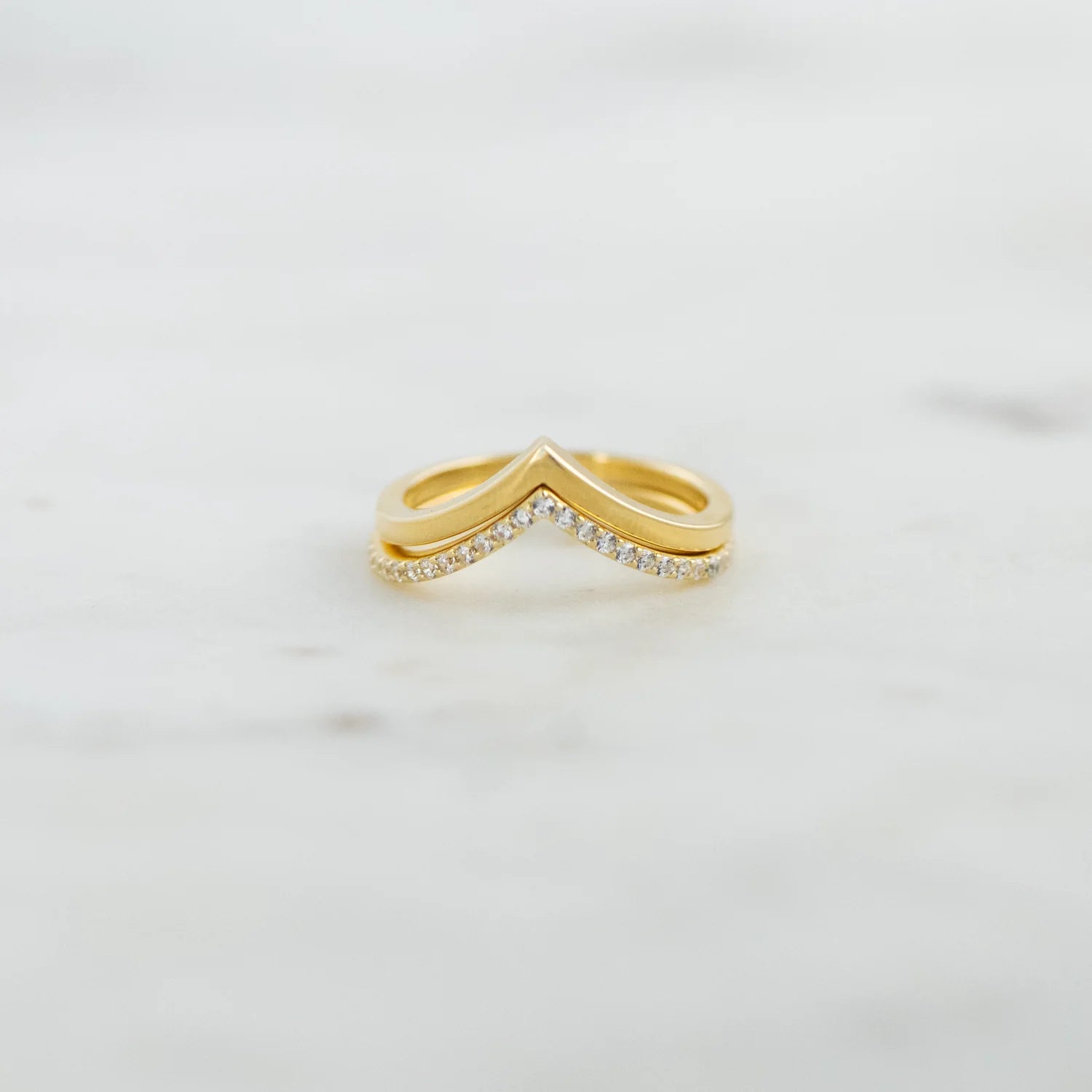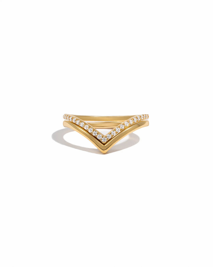 Very chic Chevron Ring Set - Includes: 1 Diamond Ring & 1 Plain Ring