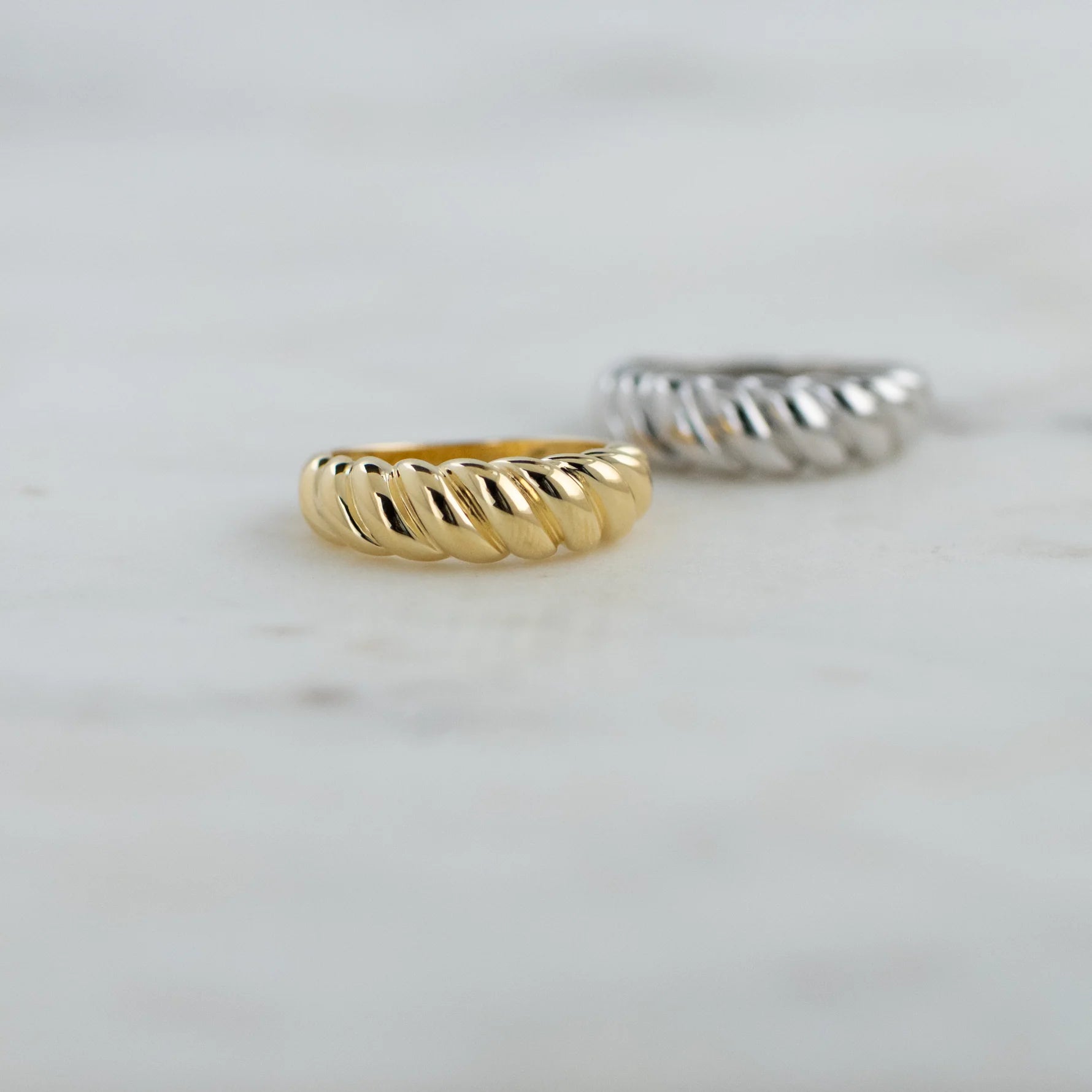 Trendy, and gorgeous croissant/dome ring is the perfect statement accessory! It's super high-quality and looks beautiful on.