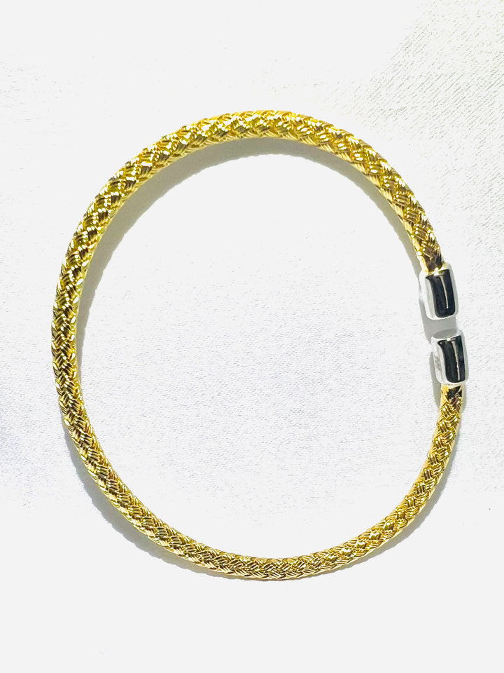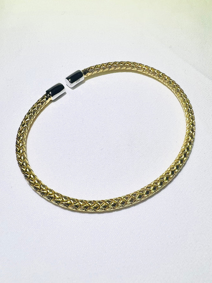 Sterling Silver & Gold-plated Polished Woven Cuff Bangle