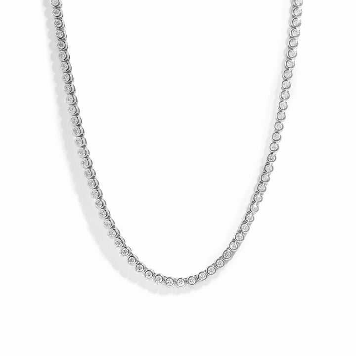 Handmade tennis necklace featuring a bezel design. It is chic and understated. Can be dressed up or down, stacked or on its own! It is the ultimate accessory at the moment. Truly a must have in every collection!