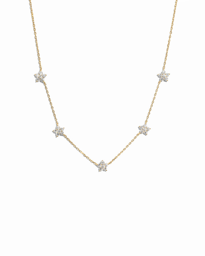 Enhance your look with our Diamond Flower Necklace, a stunning piece that adds a touch of sparkle to any outfit. Featuring a delicate floral design, this beautiful flower necklace shines on its own or layered with your favorite pieces. Chic, elegant, and perfect for adding a bit of dazzle to your style, it's a must-have addition to your jewelry collection.