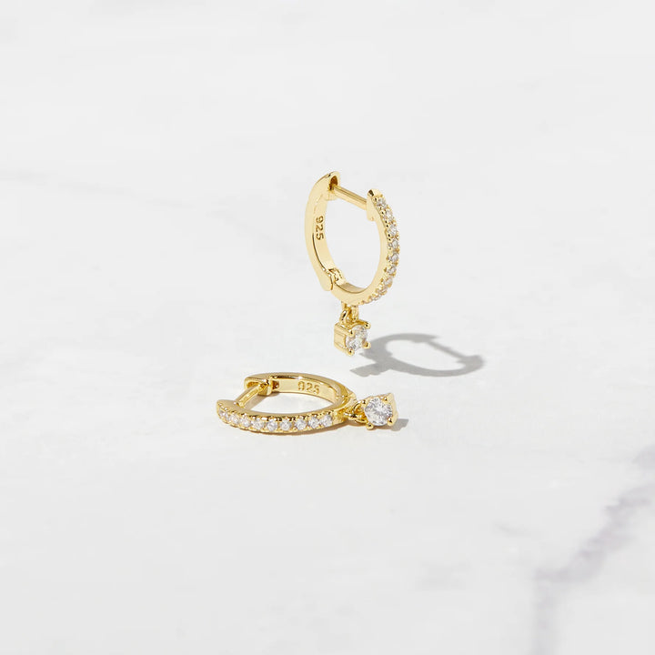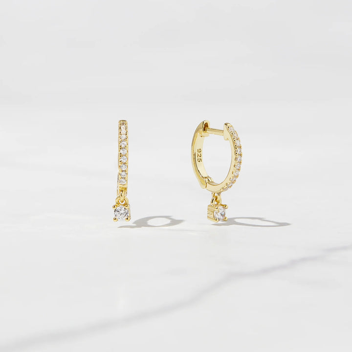 Dainty pavé charm huggies featuring a small, brilliant cz stone for a delicate and trendy look!