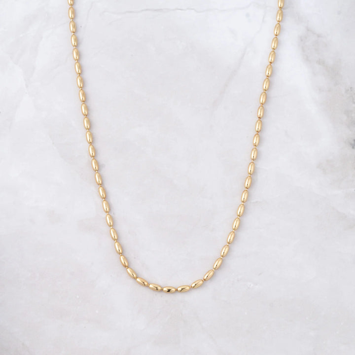 This beaded necklace is pretty! Great for stacking or worn alone. Makes a statement while still being dainty and minimalist!
