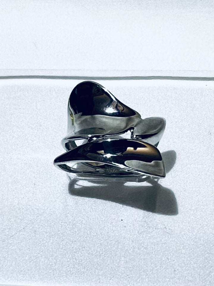 Sleek Wide Open Wave Wrap Sterling Silver Ring