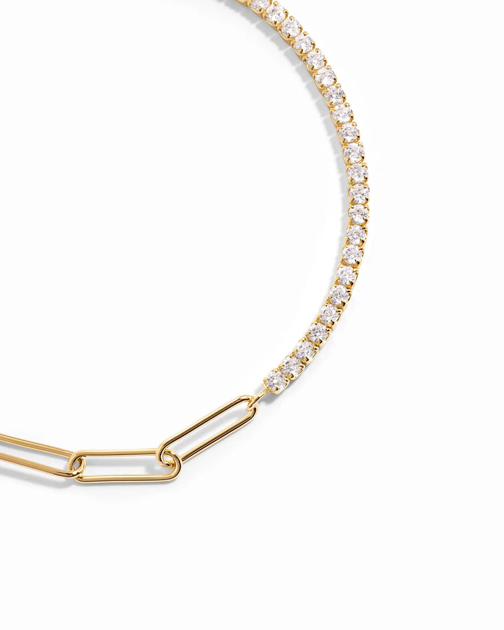 Beautiful and trendy bracelet featuring half tennis bracelet and half paperclip bracelet design. It's perfect for layering or wearing along for a minimalist look!