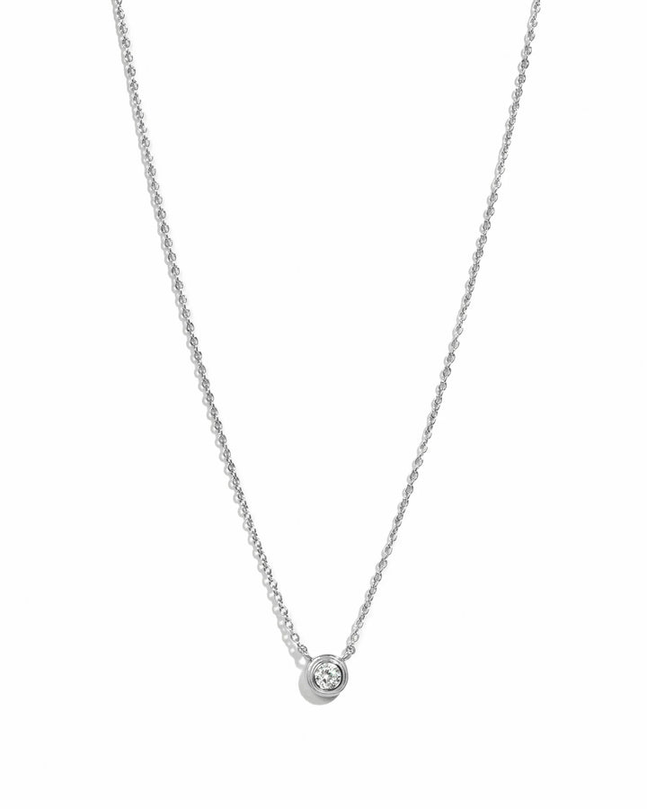 Super dainty, cubic zirconia solitaire necklace. We use highest grade CZs for an authentic diamond look! It looks like a genuine diamond necklace!