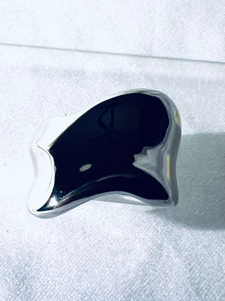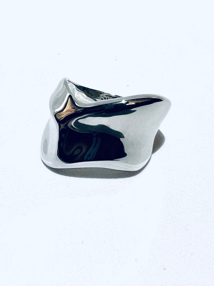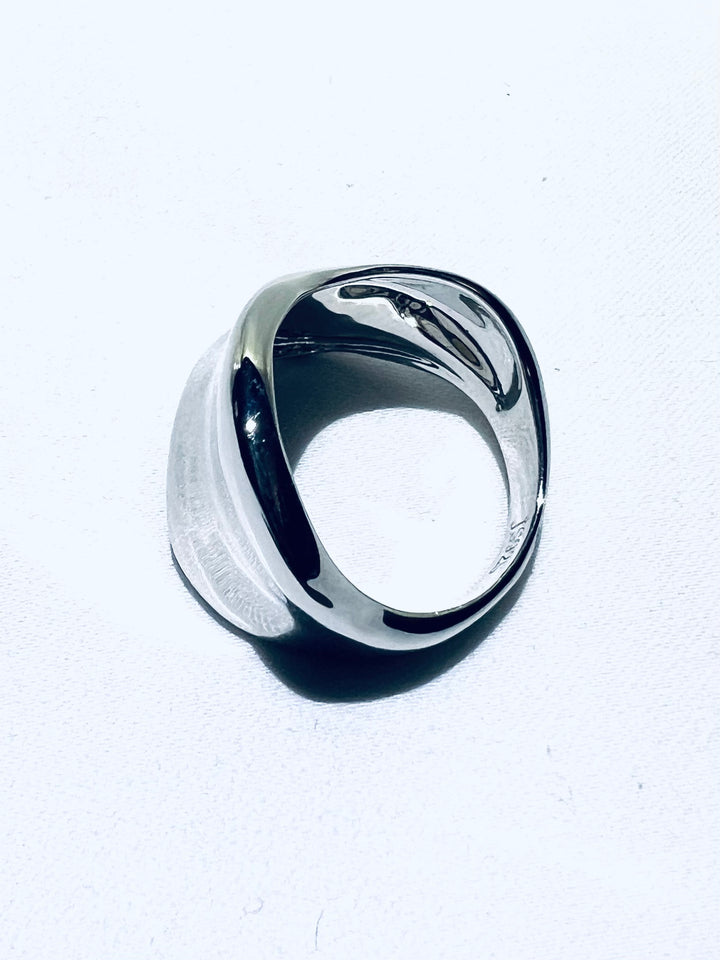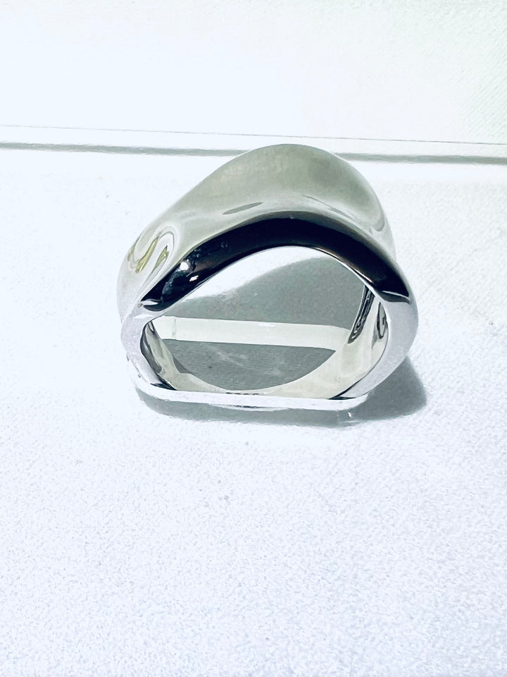 The wave square top design is twisted just slightly to reveal an intriguing asymmetrical effect. Sterling silver. 1/2" wide.